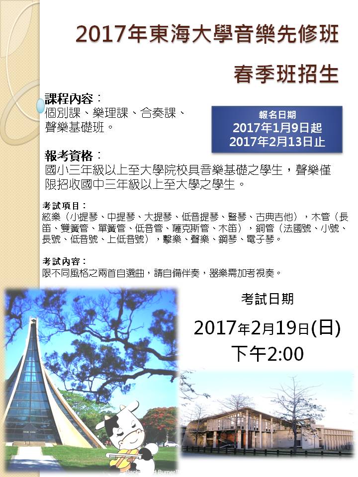 東海大學音樂學系---2017音樂先修班春季招生開始