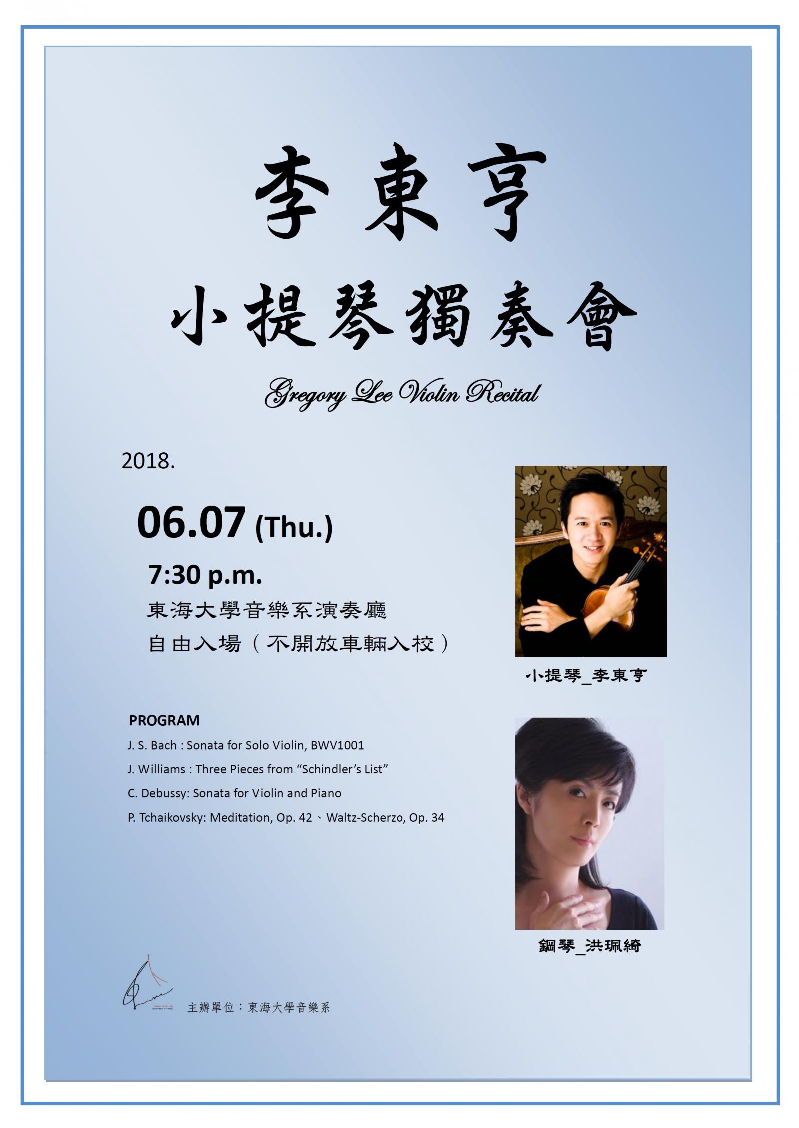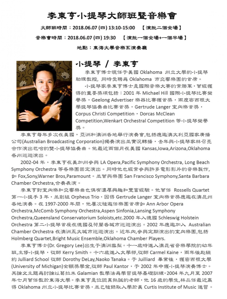 東海大學音樂學系---2018.06.07李東亨小提琴大師班暨音樂會