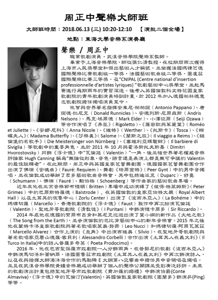 東海大學音樂學系---2018.06.13周正中聲樂大師班