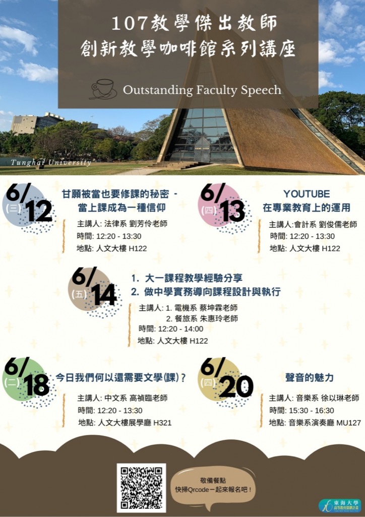 本系徐以琳老師榮獲107學年度教學傑出獎,經教資中心邀請主講「107教學傑出教師創新教學咖啡館系列」,以創新教學為主題分享。