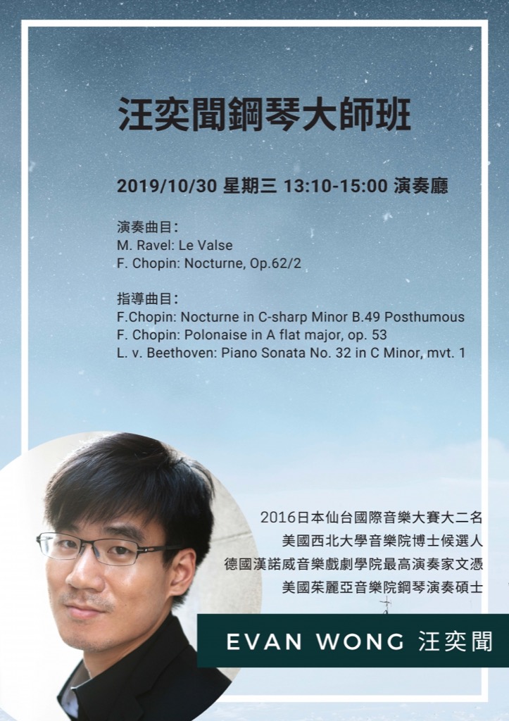 東海大學音樂學系---Evan Wong 汪奕聞 鋼琴大師班
