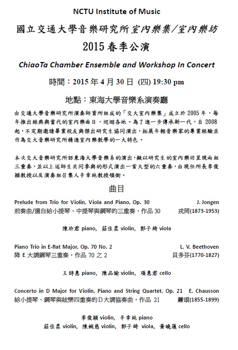 東海大學音樂學系---國立交通大學音樂研究所室內樂坊春季公演