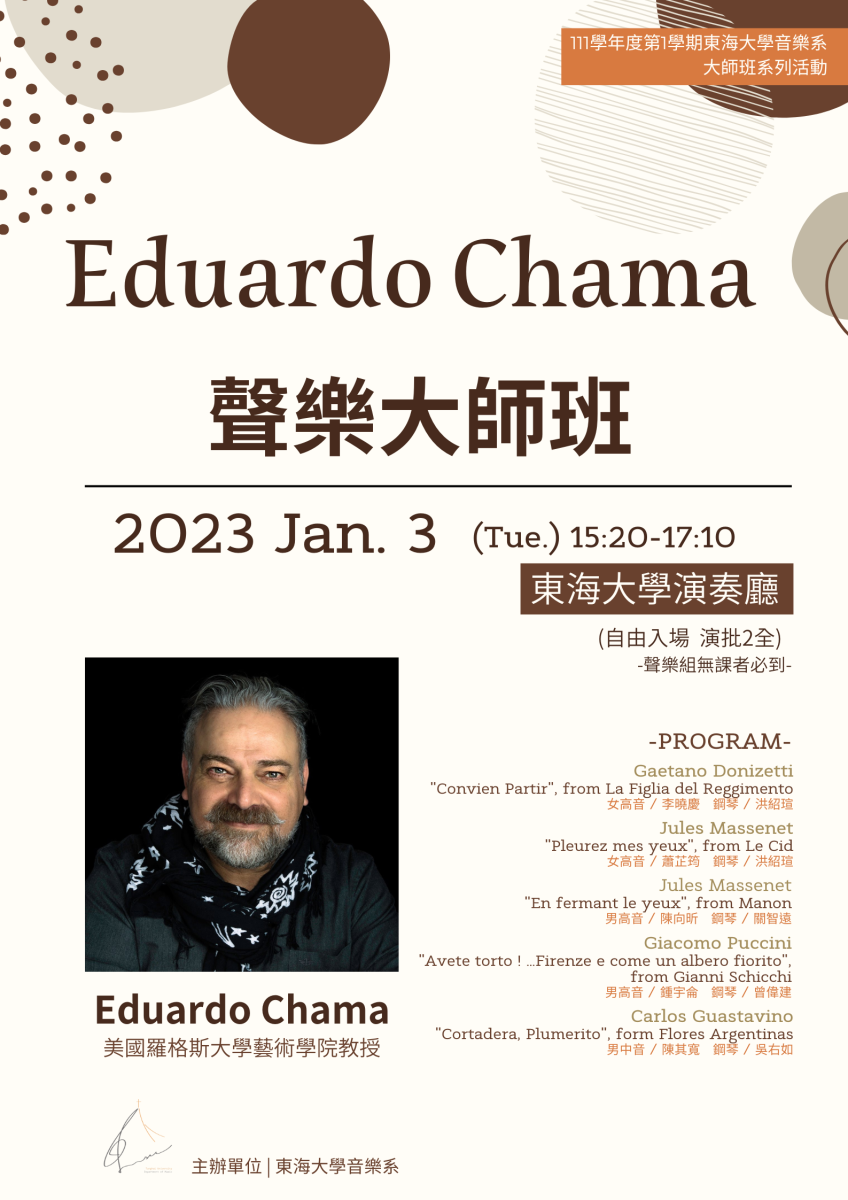東海大學音樂學系--系辦公告-Eduardo Chama聲樂大師班