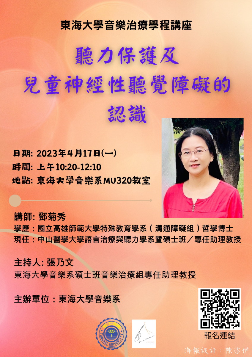 東海大學音樂學系--系辦公告-音樂系治療學程講座-​​​​​​​聽力保護及兒童神經性聽覺障礙的認識
