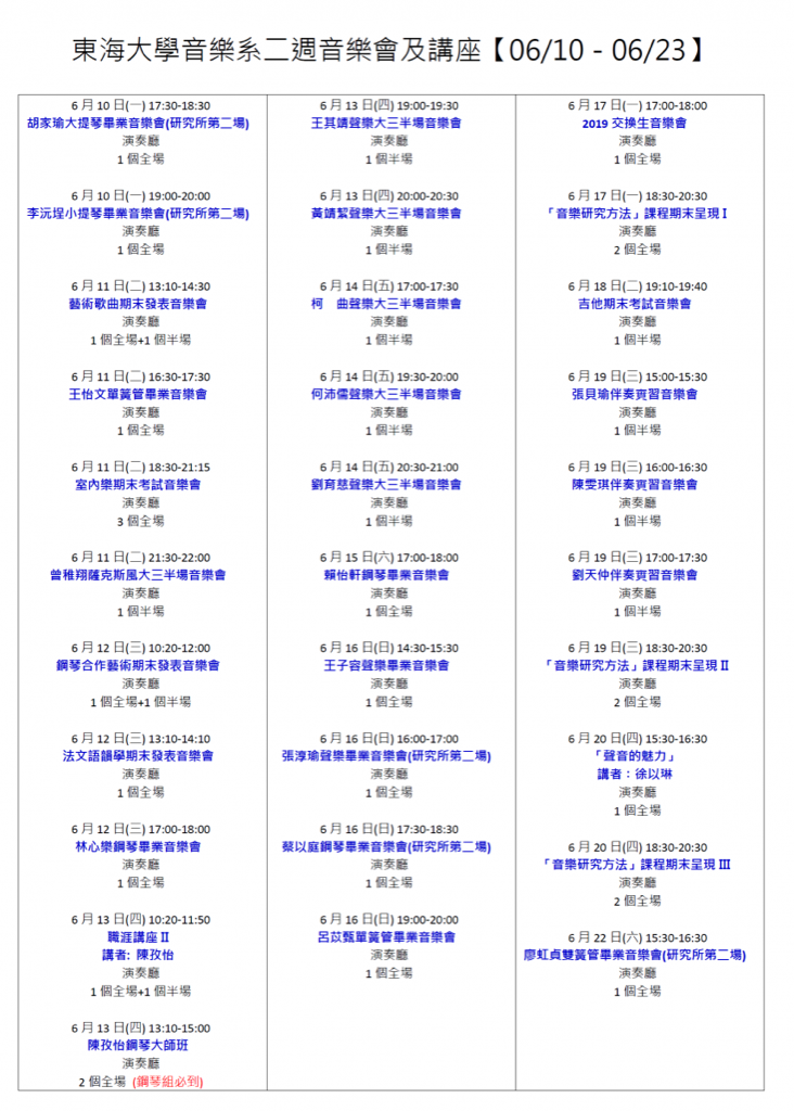 東海大學音樂學系--系辦公告-本二週音樂會與講座