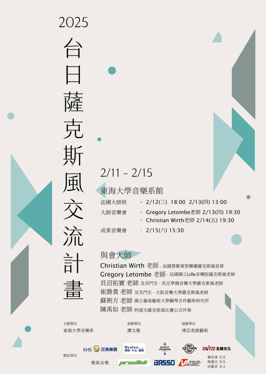 由本系兼任老師譚文雅老師主辦的【2025台日薩克斯風交流計畫】活動將於明天開跑~