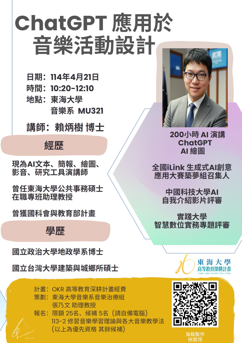 現為AI文本、簡報、繪圖、 影音、研究工具演講師
