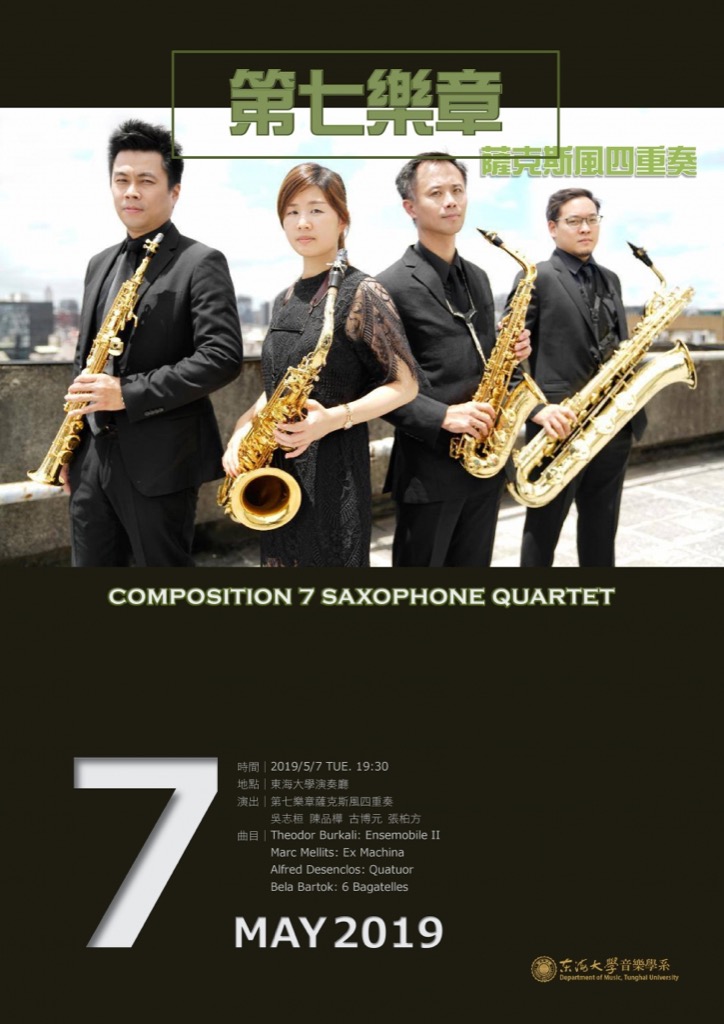 簡介:第七樂章薩克斯風四重奏成立於2007年6月8日,並於2007年7月創團首演。歷經多次更迭,現任團員為:古博元、吳志桓、陳品樺、張柏方,均在北美各大著名大學取得博士學位。