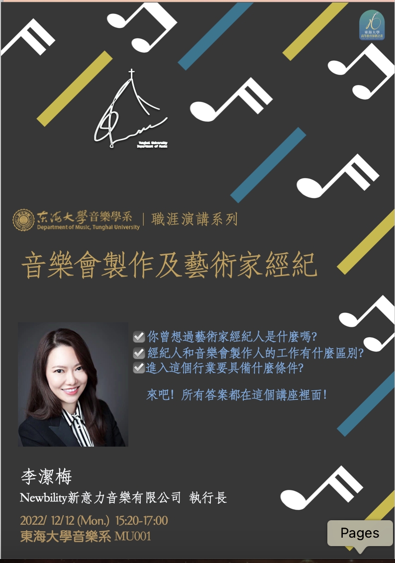 東海大學音樂學系---【職涯講座】 音樂會製作及藝術家經紀
