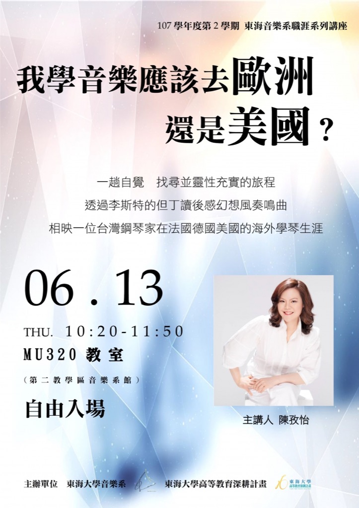 東海大學音樂學系---職涯講座─我學音樂應該去歐洲還是美國?