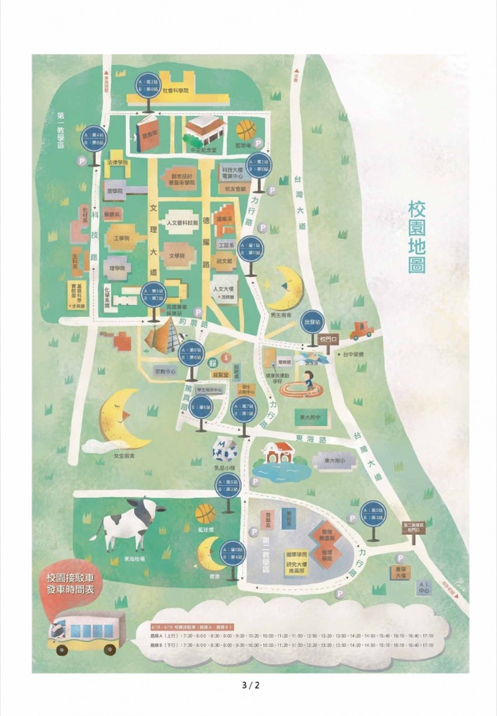 鄰近停車場包括鹿場、管院停車場,以及附小停車場