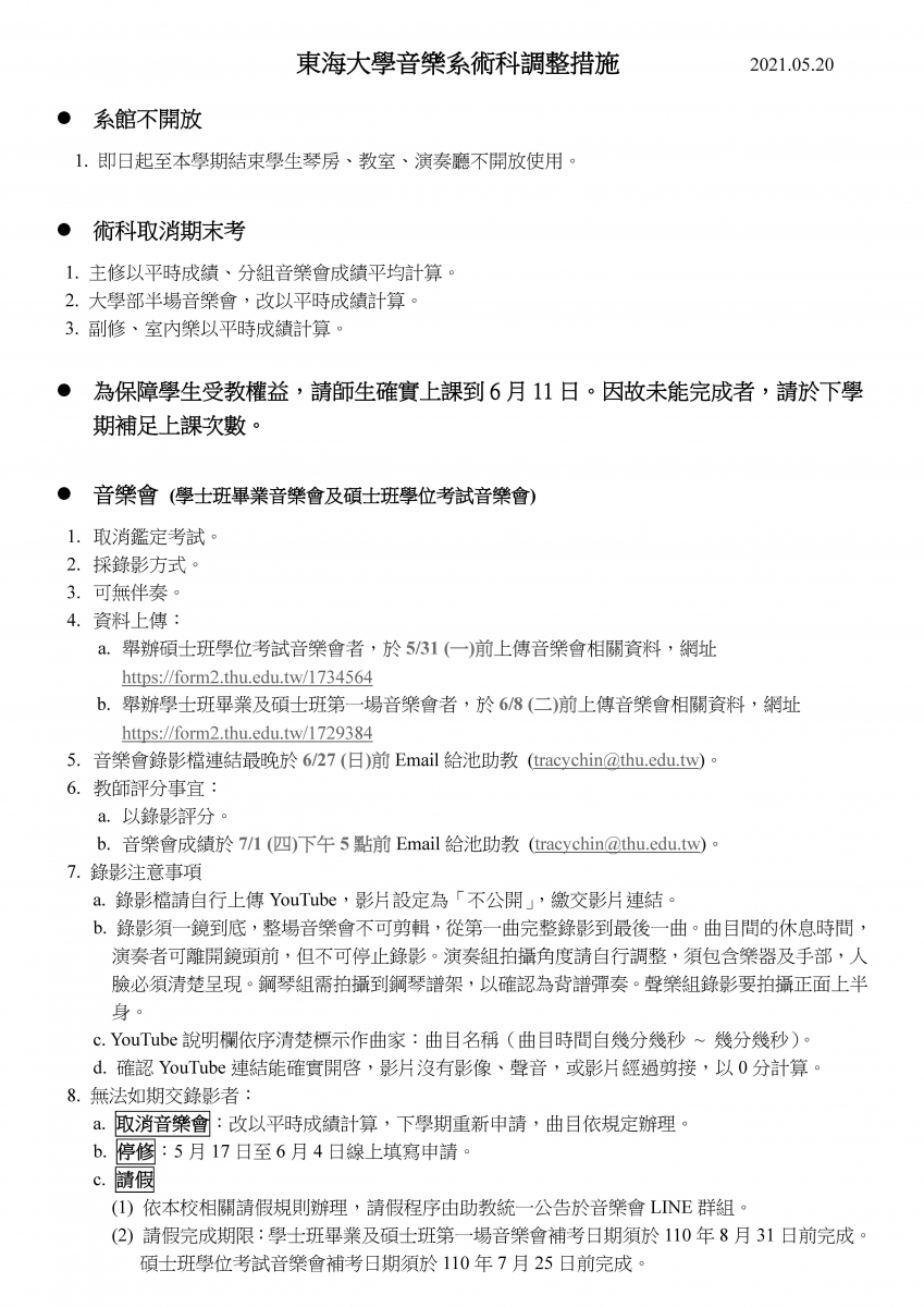 東海大學音樂學系---東海大學音樂系術科調整措施